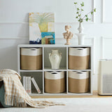 Klassische Farben: Wir bieten drei Farbvarianten an: 3-farbig Grau, Khaki und Weiß sowie Braun & Weiß. Dank ihrer robusten und langlebigen Konstruktion können unsere Körbe schweren Lasten standhalten und ihre Form behalten. Diese Farbkombinationen verleihen den Körben ein modernes und elegantes Aussehen, das zu jeder Einrichtung passt.