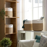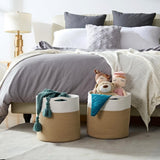33x33cm Geflochten Aufbewahrungskorb Baumwolle mit Griffen Khaki und Weiß