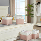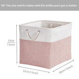 Diese stilvollen, quadratischen Aufbewahrungskörbe (33x38x33 cm) in sanftem Rosa und Weiß bieten eine optimale Lösung für die Organisation von Kleidung, Spielzeug oder Decken. Perfekt für Kallax-Regale geeignet, fügt sich das schlichte Design harmonisch in moderne, skandinavische oder minimalistische Einrichtungsstile ein. Ideal für das Schlafzimmer, Kinderzimmer oder Wohnzimmer – die Boxen schaffen Ordnung, ohne Kompromisse bei der Ästhetik. Gefertigt aus robustem Stoff und EVA, langlebig und leicht zu reinigen.