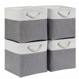 MANGATA Aufbewahrungsbox Stoff – faltbarer Würfel-Aufbewahrungskorb für Regal & Schrank, mit Seilgriffen (25/28/30/33 cm & 33×38×33 cm, Grau-Weiß)