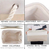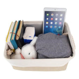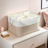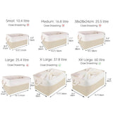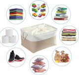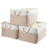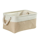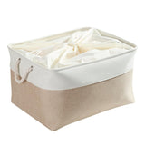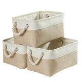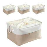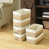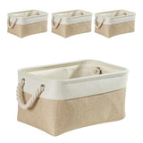Cesta de almacenamiento de tela con asas, color caqui y blanco, 4 unidades