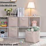 Ich habe nach Boxen für Kallax gesucht, oder eher Körben. Ziel war es eine Art Wäschesammler zu machen und dafür dann mehrere Körbe in einen 4er Kallax zu stecken. Diese Körbe sehen schick aus, wirken stabil und haben Griffe, sodass sie sich for mein Vorhaben sehr gut eignen.Ich bin zufrieden.