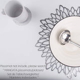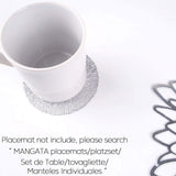 PROTECCIÓN PARA LA MESA: Los elegantes posavasos redondos de plata Mangata protegen sus queridas mesas de comedor y encimeras de cocina de derrames, manchas, arañazos, agua caliente, café y té.