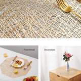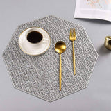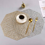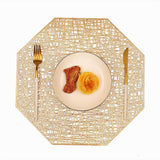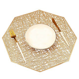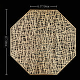 Estos individuales octogonales huecos en oro/plata aportan una buena decoración y protección a su mesa de comedor, adecuados para el hogar, las comidas, la cocina, fiestas, Navidad, vacaciones, etc.