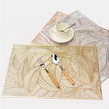 Estos individuales con forma de hoja calada en oro/plata aportan una buena decoración y protección a su mesa de comedor, adecuados para el hogar, las comidas, la cocina, fiestas, Navidad, vacaciones, etc.