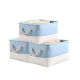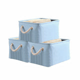 Caja de almacenamiento de tela con cordón para juguetes y ropa, paquete de 3 (azul)