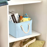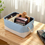 El azul simboliza serenidad, libertad y frescura. ¡Una clásica cesta de almacenaje de tela azul le dará a tu armario un aspecto ordenado, fresco y natural!