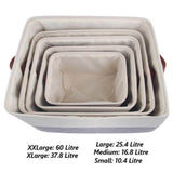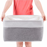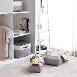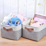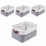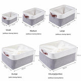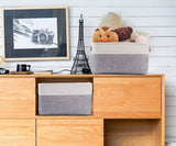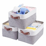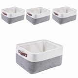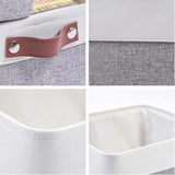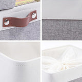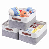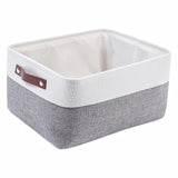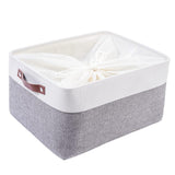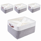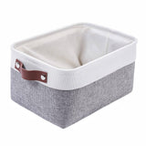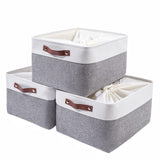 Cestas de almacenaje de tela gris/blanca con elegantes asas de cuero